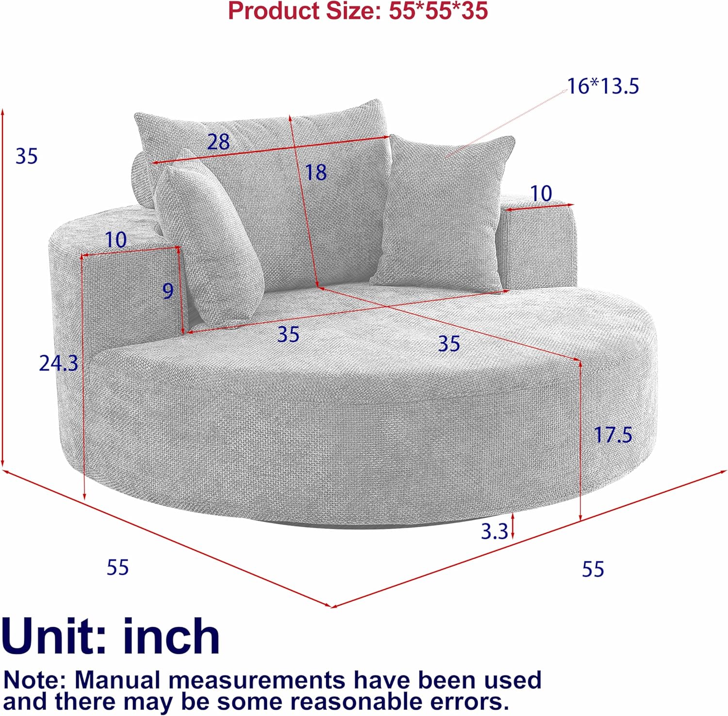 - 【Ergonomic Design】The round swivel chair is equipped with a curved backrest, a padded seat and 3 removable pillows, giving your endless comfort. Upholstered modern sofa chair perfect for living room, bedroom, office, reception area, dorm, bedroom lounge or your personal theater chair, providing much needed comfort.