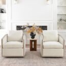 • EFFORTLESS 360-DEGREE ROTATION – Featuring a 360-degree swivel mechanism, this accent barrel armchair allows for easy movement and rotation, enabling you to effortlessly adjust your position and orientation as needed. This feature of this barrel chair also grants you the freedom to easily shift your focus or change your vantage point, ensuring optimal comfort and functionality in any living space. This versatility makes this swivel barrel chair perfect for a variety of applications, from reading nooks to home offices.